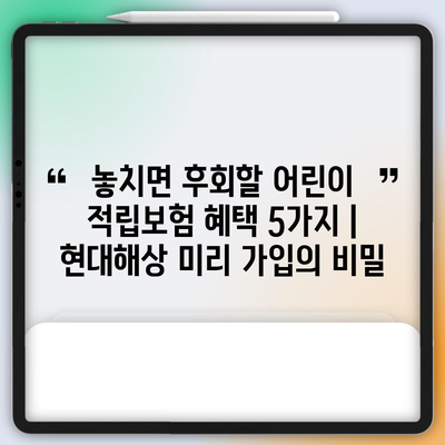 놓치면 후회할 어린이 적립보험 혜택 5가지 | 현대해상 미리 가입의 비밀
