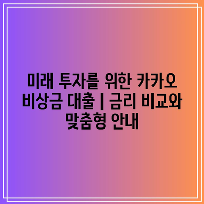 미래 투자를 위한 카카오 비상금 대출 | 금리 비교와 맞춤형 안내