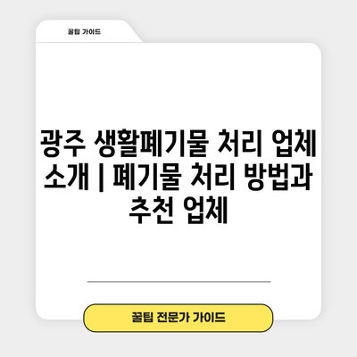 광주 생활폐기물 처리 업체 소개 | 폐기물 처리 방법과 추천 업체