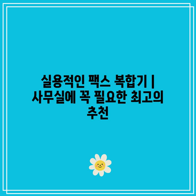 사무실 업무 효율을 높여줄 실용적인 팩스 복합기 추천! 지금 바로 확인하고 최고의 선택을 하세요!
