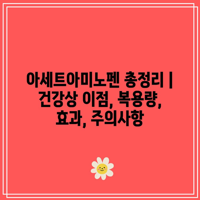 아세트아미노펜 총정리 | 건강상 이점, 복용량, 효과, 주의사항